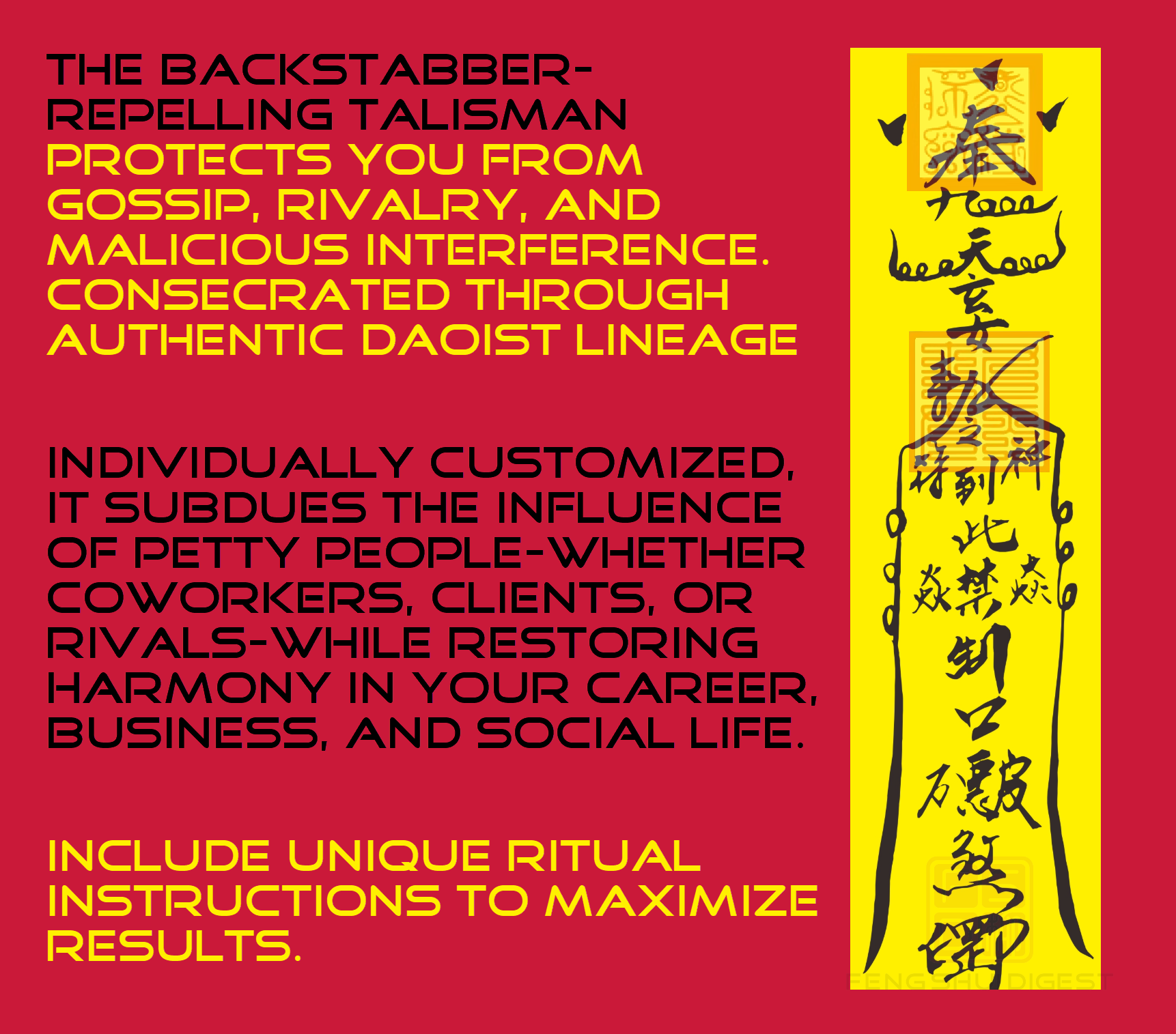 The Backstabber-Repelling Talisman is a powerful, lineage-consecrated tool designed to counter exactly this. Rooted in authentic Daoist ritual practice, it specifically works to subdue the influence of petty people, shield you from slander, and greatly reduce their impact on your life.